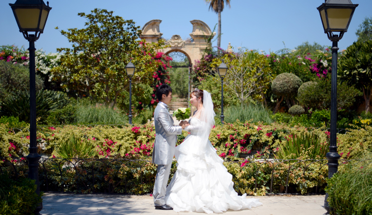 •施設使用料•挙式中の音楽(生演奏)•結婚証明書(法的効力はありません)•式進行役(セレモニーマスター)•日本語通訳兼アシスタント•ホテル~宮殿間専用車送迎•ご新婦様ヘアセット&メイク(日本人美容時+英語メイクアップアーティストまたは英語スタイリスト+日本語アシスタント)•プロカメラマンによる写真撮影(データ100カット、挙式セレモニー、宮殿内での撮影)